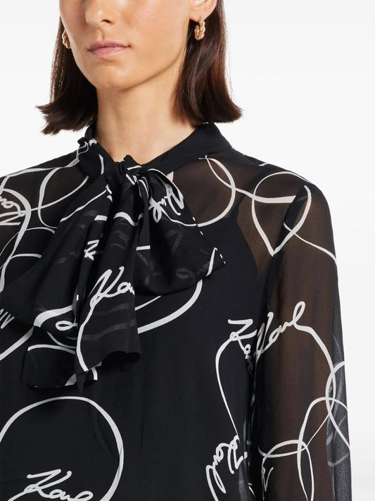 Karl Lagerfeld Printed Bow Μπλούζα 245W1604
