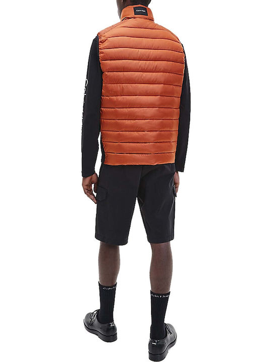 Ανδρικό αμάνικο μπουφάν puffer της εταιρίας Calvin Klein σε πορτοκαλί χρώμα. Ελαφρύ, ιδανικό για τους μεταβατικούς μήνες.