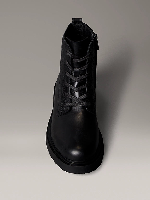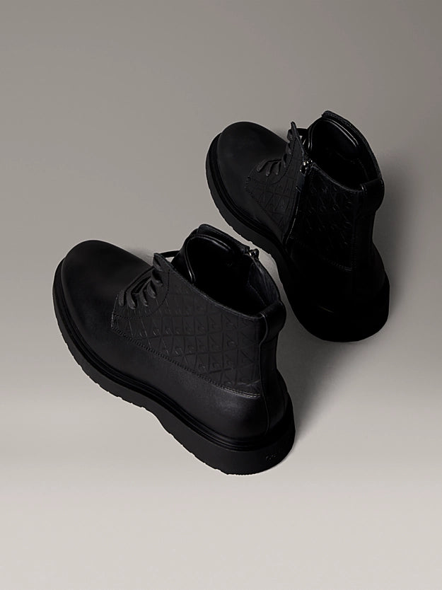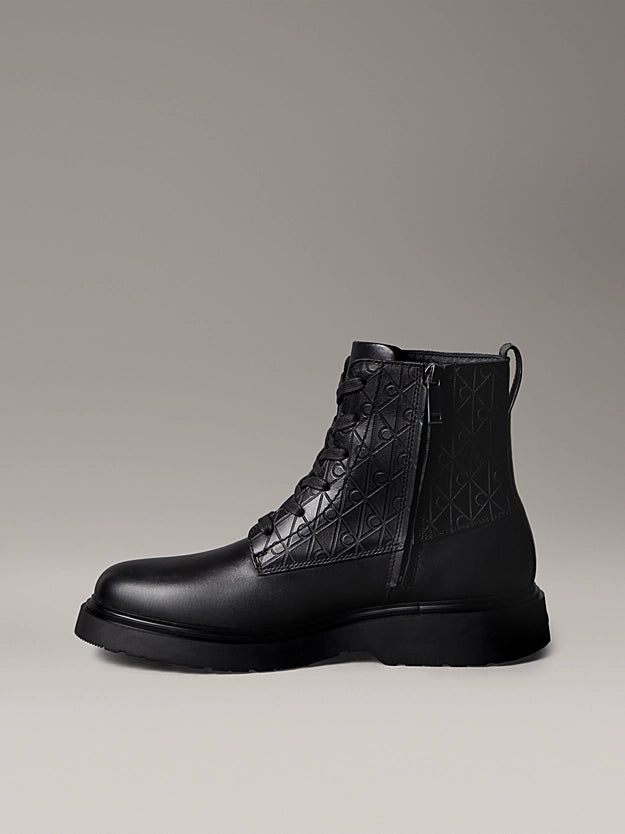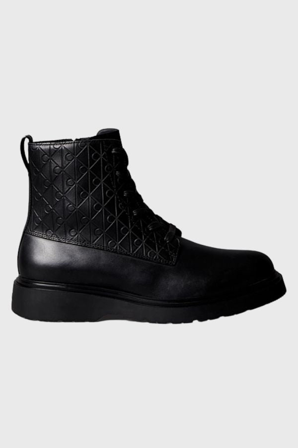Calvin Klein Leather Emblem Logo Lace-Up Zip Boots HM0HM01904