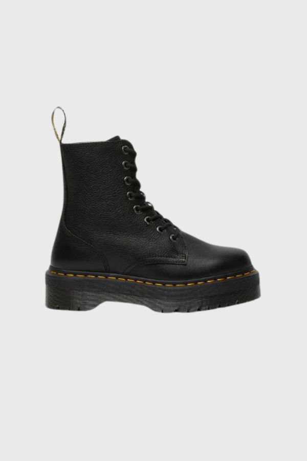 Aρβυλάκια με χοντρό τακούνι της εταιρίας Dr. Martens. Είναι κατασκευασμένα από δέρμα, ένα υλικό που αναπνέει βοηθώντας στην αποφυγή δυσάρεστων οσμών, ενώ παράλληλα καθαρίζεται εύκολα. Προσαρμόζονται στη φόρμα του ποδιού παρέχοντας επιπλέον άνεση. Είναι ανθεκτικά στην καθημερινή χρήση με διάρκεια στο χρόνο. Διαθέτουν κορδόνια για να προσαρμόζονται κατάλληλα στο πόδι.