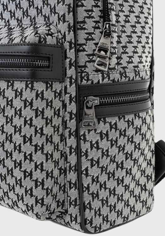 Unisex τσάντα πλάτης της εταιρείας Karl Lagerfeld. Ανήκει στην Backpack συλλογή και χαρακτηρίζεται από τον άψογο σχεδιασμό της. Διαθέτει το KL Monogram σε επαναλαμβανόμενο μοτίβο σε όλη την έκταση. Διαθέτει μεγάλους χώρους αποθήκευσης και μία εξωτερική θήκη που κλείνει και αυτή με φερμουάρ.