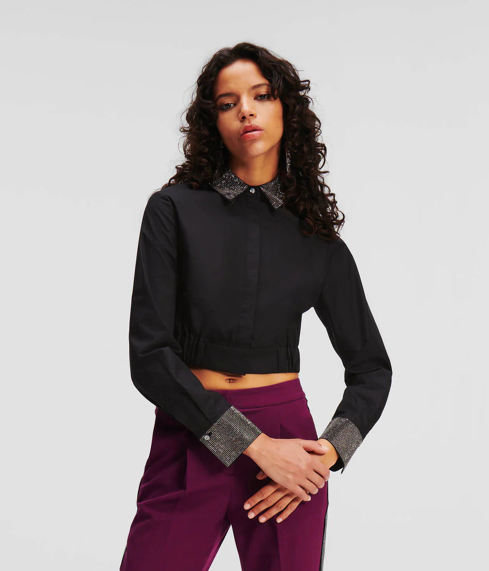 Karl Lagerfeld Rhinestone Cropped Shirt 236W1605
