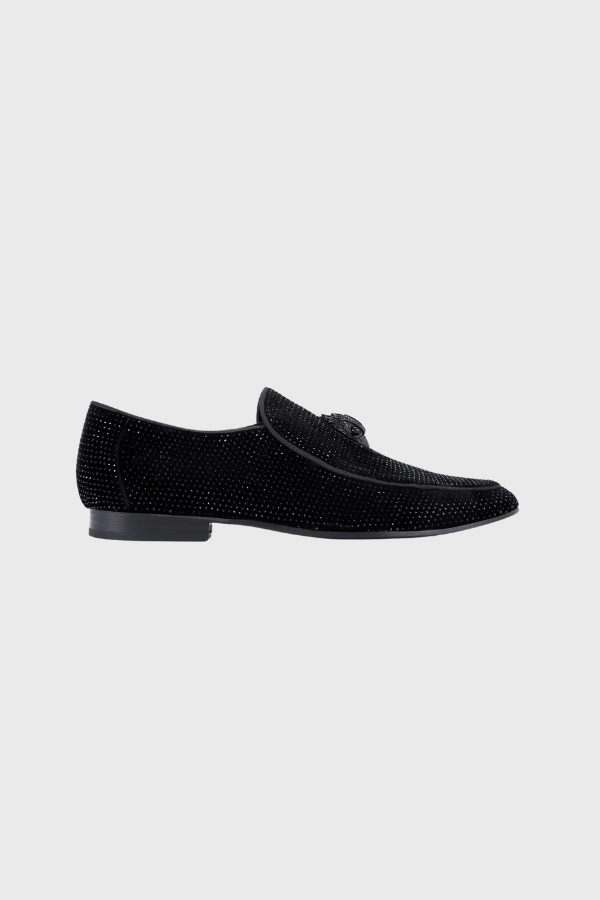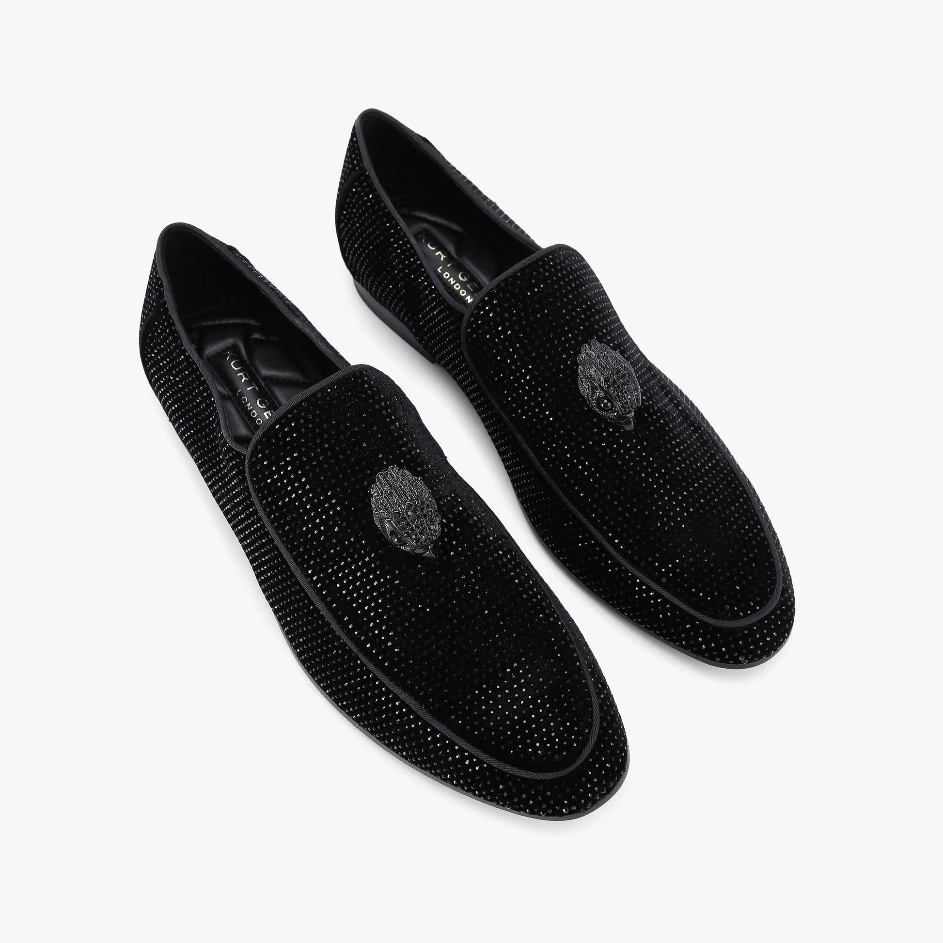 Τα loafers Hugh Eagle έχουν μαύρο βελούδινο επάνω μέρος που είναι διακοσμημένο με μικρά μαύρα κρύσταλλα.