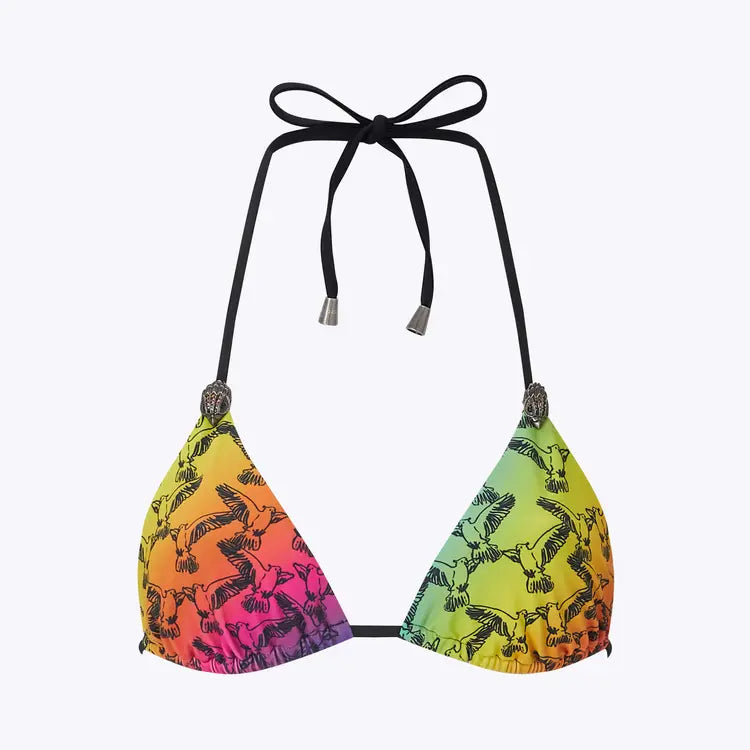 Το Gradient Triangle Bikini είναι σε σχέδιο ombre ουράνιου τόξου με στάμπα πουλιού στην κορυφή.