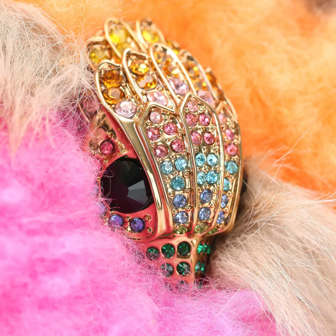 Αυτή η τσάντα Mini Faux Fur Kensington είναι κατασκευασμένη από λωρίδες από συνθετική γούνα σε διάφορα χρώματα και σχέδια. Το μεγάλο χρυσό κεφάλι αετού διαθέτει κρύσταλλα σε χρώματα του ουράνιου τόξου στο μπροστινό πτερύγιο.