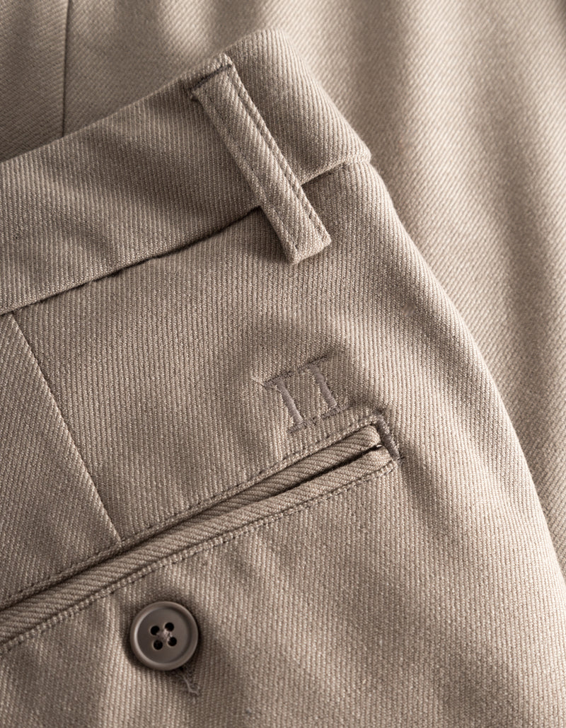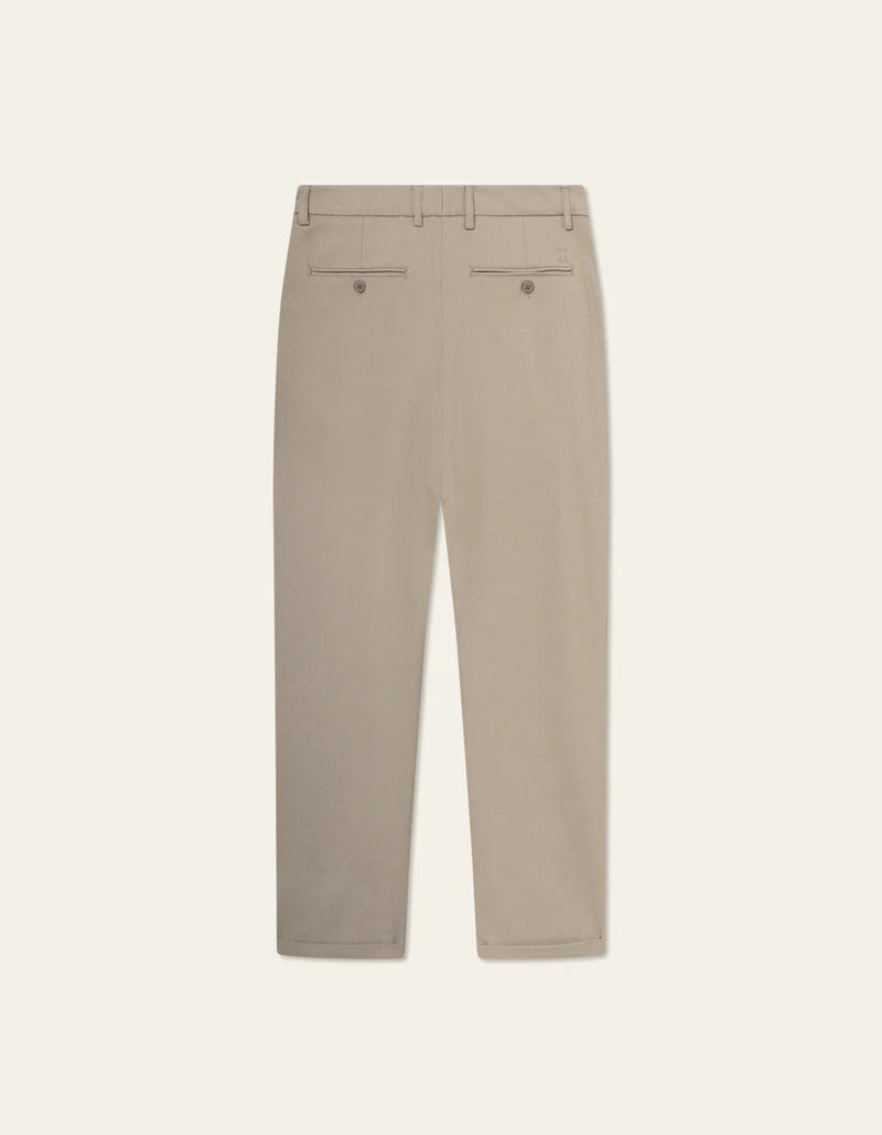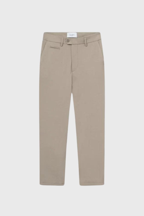 Παντελόνι Como suit από την Les Deux. Ανοιχτό μπεζ χρώμα και από ελαστικό ύφασμα που είναι σχεδόν χωρίς ζάρες. Μοντέλο Chino με φόδρα με κρυφό κλείσιμο και πλαϊνές τσέπες με μικρή τσέπη για χρήματα και τσέπες με φόδρα στο πίσω μέρος. Εφαρμόζεται στο ισχίο και στους μηρούς και στενά πόδια με μικρές στροφές από το γόνατο. Ταιριάζει σε κανονικό μέγεθος.