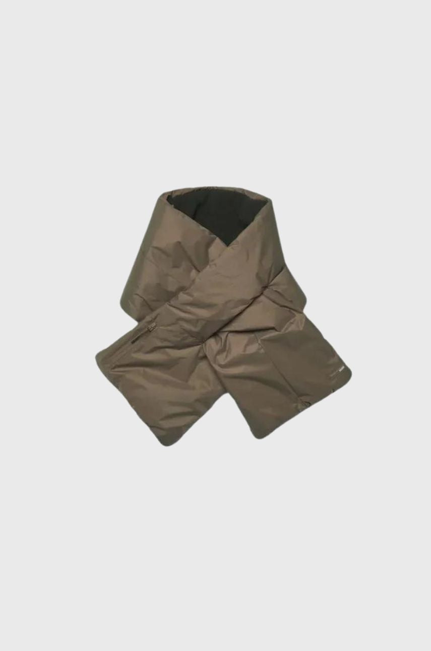 Το γεμισμένο νάιλον κασκόλ είναι ένα ελαφρώς μονωμένο αξεσουάρ για τις ενδιάμεσες εποχές. Το κασκόλ διαθέτει μια υποδοχή που δένει εύκολα, δημιουργώντας μια πιο γλυπτική εμφάνιση.