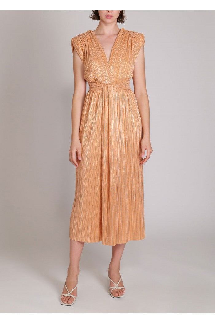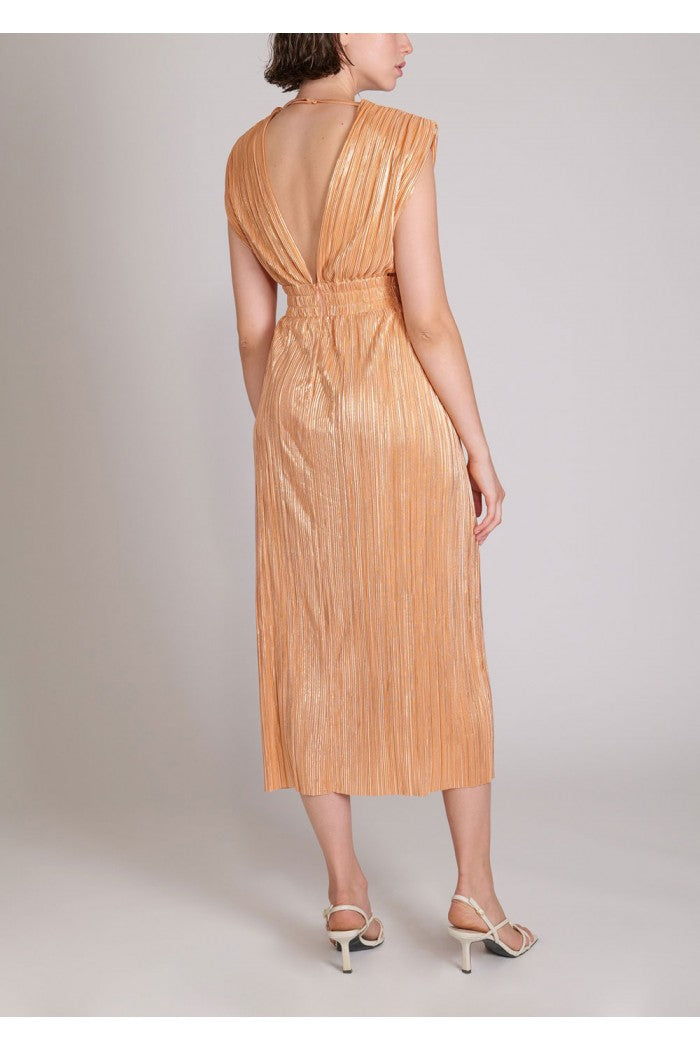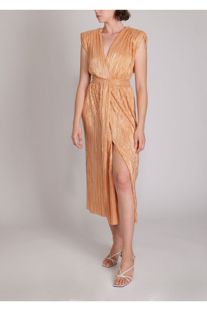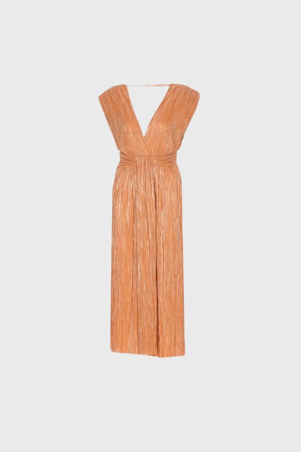 Εξειδικευμένα προσαρμοσμένο από πολυτελές σιφόν, αυτό το μίντι φόρεμα το βρίσκουμε σε ζωηρή ροδακινί απόχρωση και έχει σχεδιαστεί με κολακευτική λαιμόκοψη σε σχήμα V, τεντωμένη μέση, μαξιλαράκια για τους ώμους και έντονες πτυχώσεις.