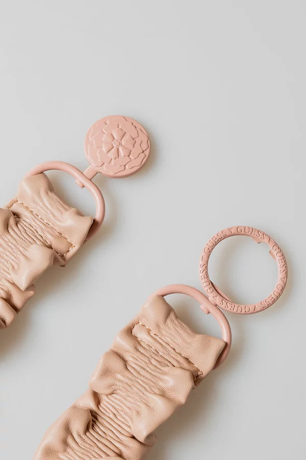 Ελαστική ζώνη GUESS σε σομόν χρώμα με ροζ παλ αγκράφα. Έχει πλάτος 3.5cm και ελάχιστο μήκος 80cm.