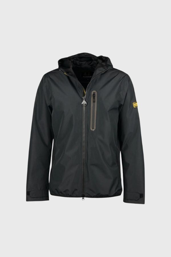 Προσφέροντας ένα αδιάβροχο must have, αυτό το μπουφάν διαθέτει γιακά και μπροστινό φερμουάρ για απρόβλεπτες βροχοπτώσεις. Με δύο πλαϊνές τσέπες, αυτό το ρούχο ολοκληρώνεται με ένα σήμα της Barbour International στο αριστερό στήθος.