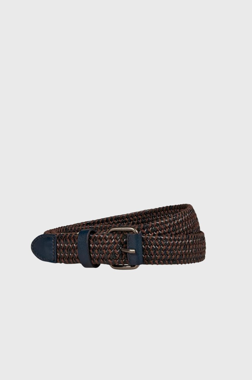 Αυτή η πλεκτή ζώνη είναι εξ ολοκλήρου κατασκευασμένη από δέρμα και κλείνει με πόρπη.