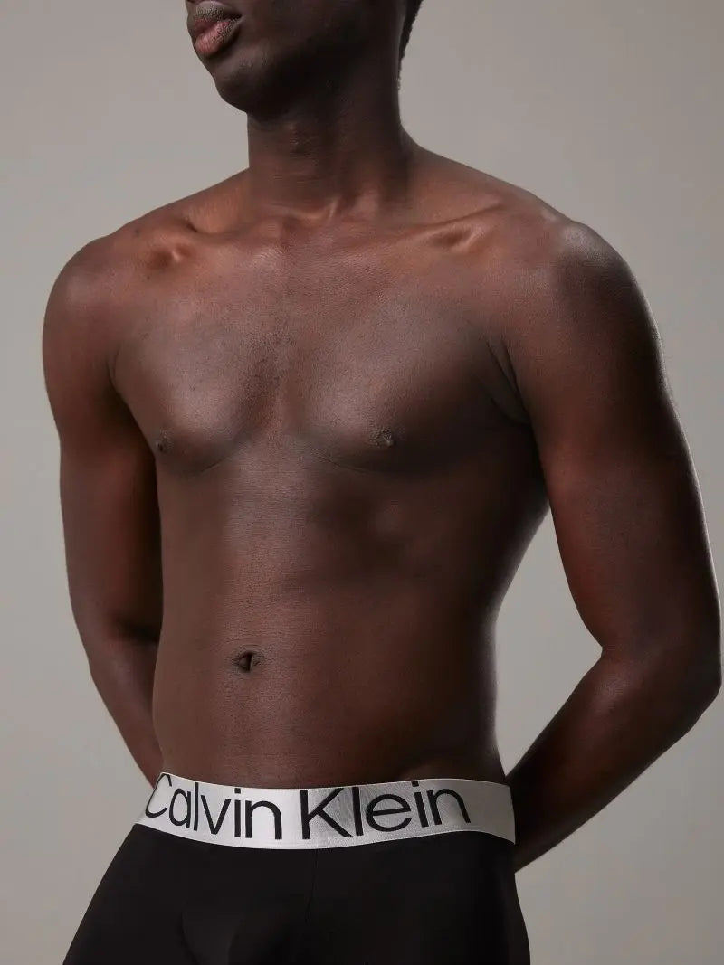 Το μεταλλικό λογότυπο στη μέση αναβαθμίζει τα σχέδια της σειράς Calvin Klein STEEL MICRO.