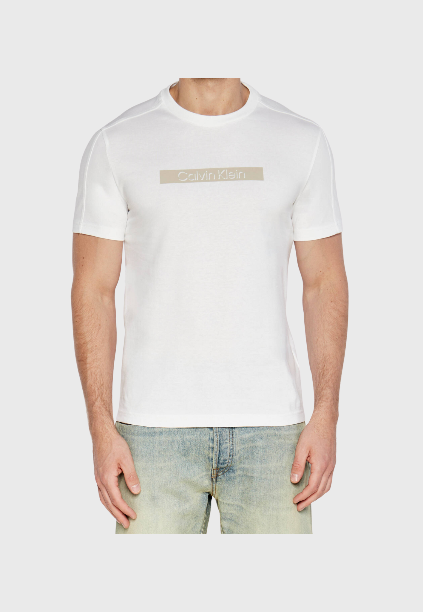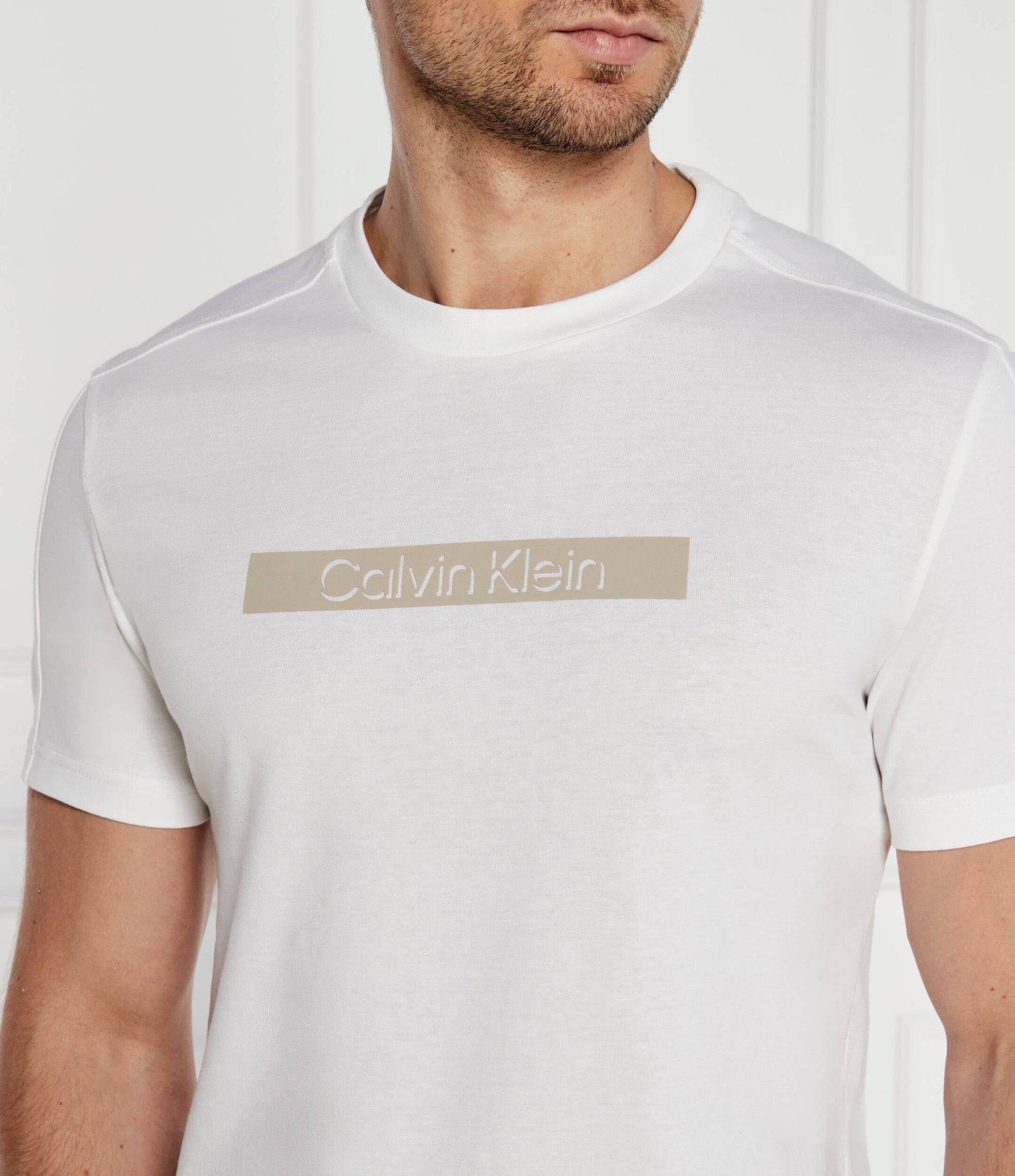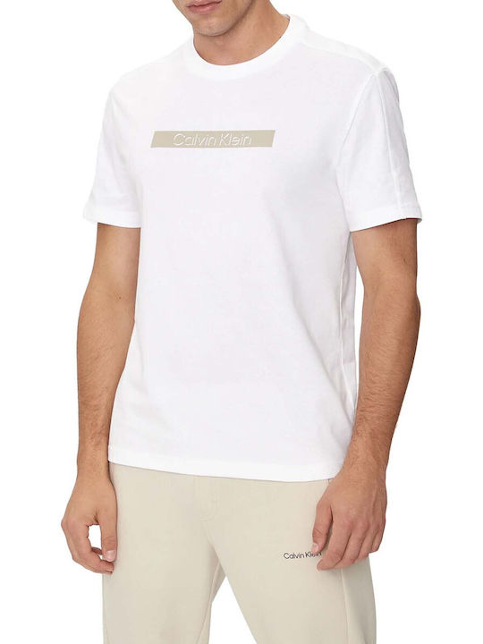 Ανδρικό T-shirt με κοντό μανίκι της εταιρίας Calvin Klein σε λευκό χρώμα με στάμπα, για casual εμφανίσεις.