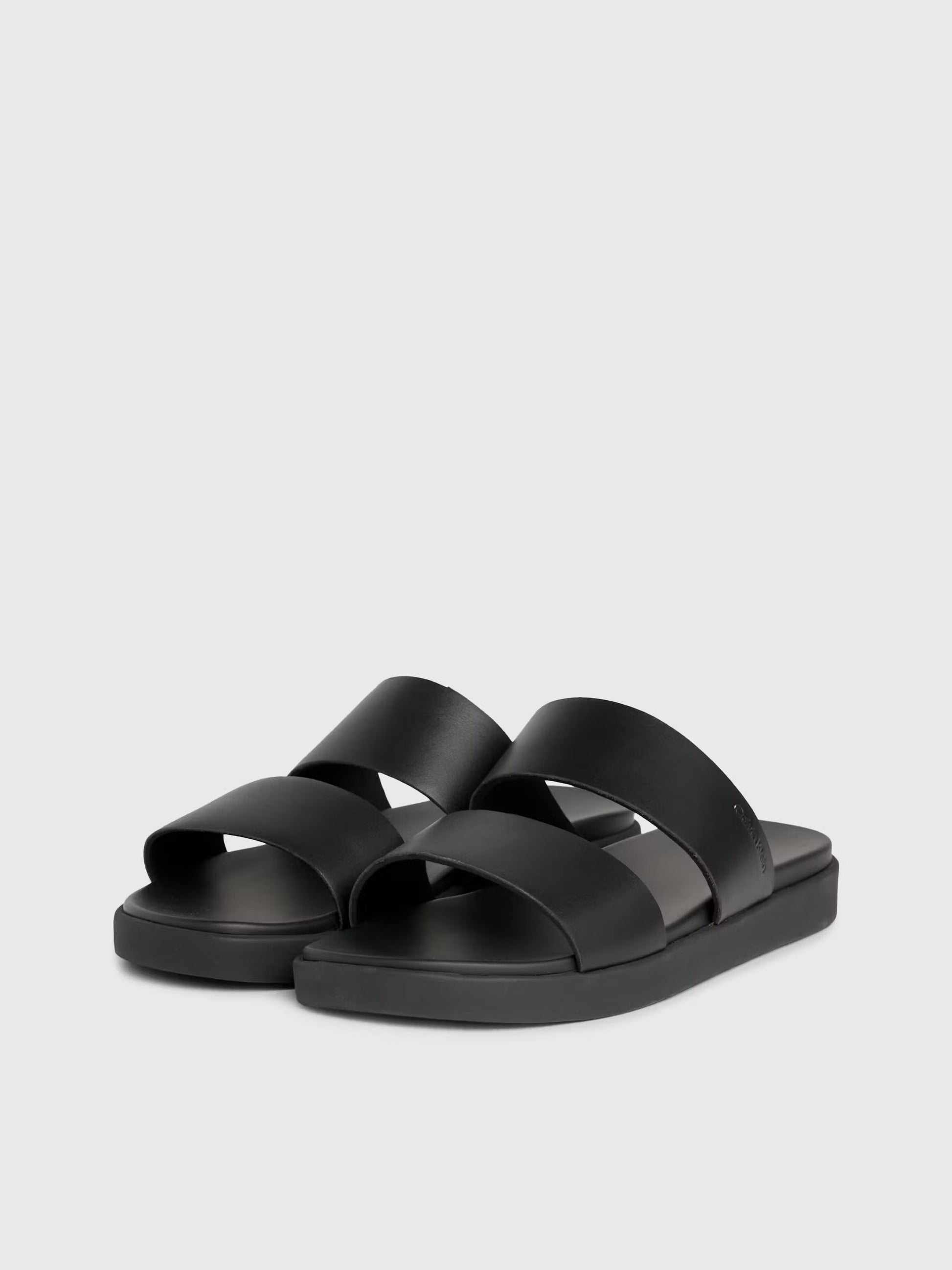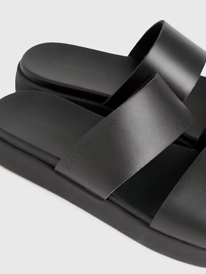 Flats Double Strap σανδάλια της εταιρίας Calvin Klein. Απαραίτητα για τις πιο ζεστές μέρες, αυτά τα σανδάλια έχουν φλατ τακούνι και ανοιχτή, στρογγυλή μύτη. Είναι κατασκευασμένα σε στυλ slip-on για εύκολη χρήση. Ολοκληρώνονται με ανάγλυφο λογότυπο Calvin Klein στο λουράκι και το τακούνι.