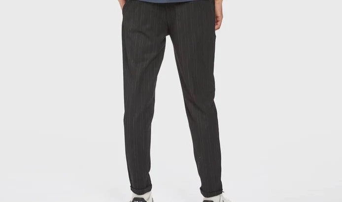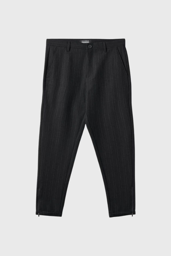 Παντελόνι chino με ρίγα,κλείνει με κουμπι και φερμουάρ στον αστράγαλο.