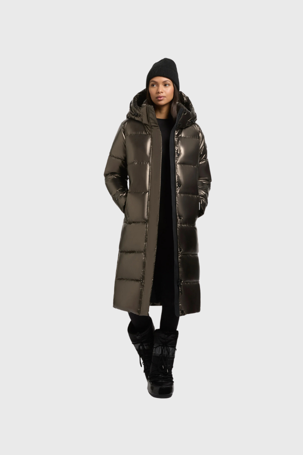 Το λαμπερό μπουφάν Rachel2 Shiny σίγουρα θα τραβήξει τα βλέμματα. Αυτό το αδιάβροχο καπιτονέ μπουφάν έχει αποσπώμενη κουκούλα που κλείνει ψηλά και εσωτερικό γιακά. Ελαστικές μανσέτες στην επένδυση των μανικιών, πλαϊνές σχισμές με φερμουάρ, κουκούλα και μέση με κορδόνι περίσφιξης και φερμουάρ διπλής κατεύθυνσης με προστατευτικό κάλυμμα και μαγνητικό κλείσιμο ολοκληρώνουν το σχεδιασμό και τη λειτουργικότητα αυτού του χειμερινού παλτού.