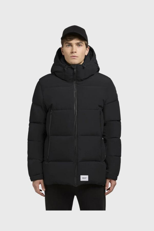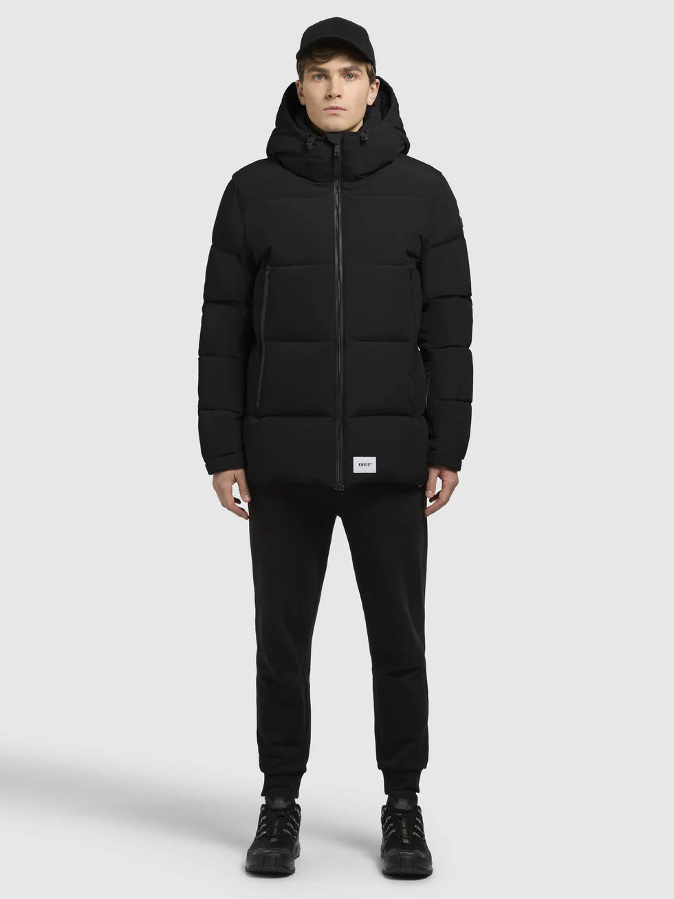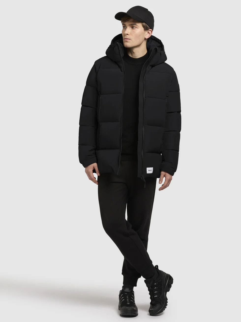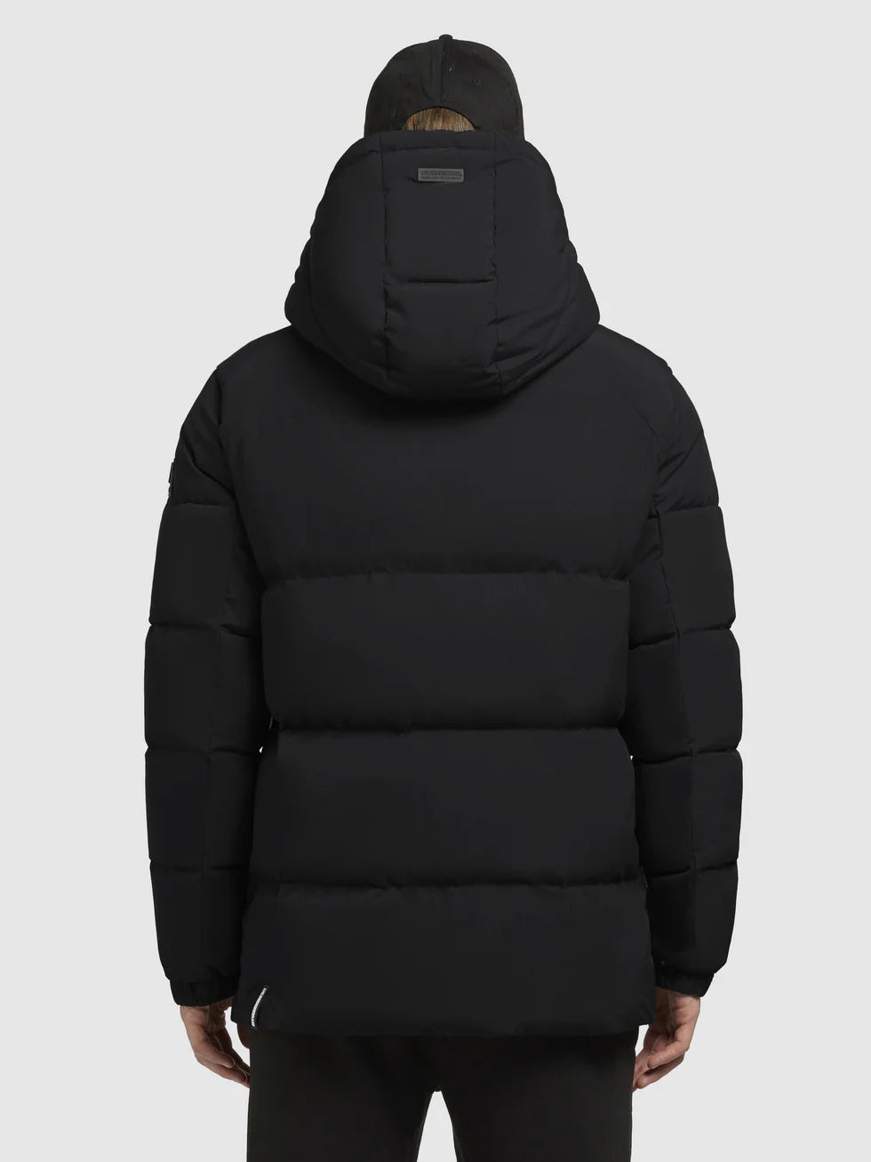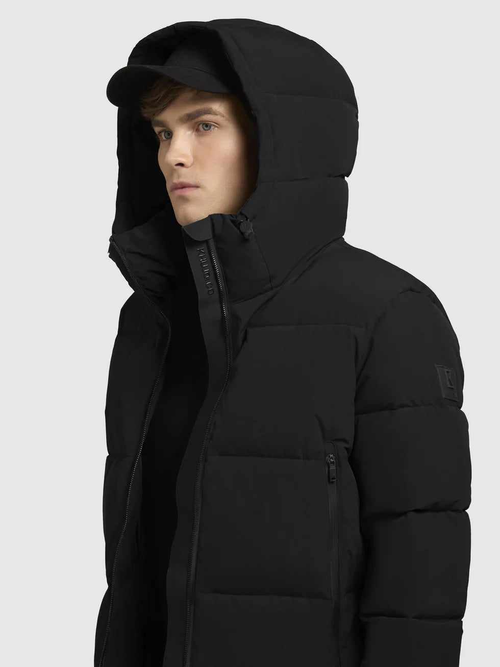 Η κουκούλα κλείνει ψηλά με εσωτερικό γιακά και κορδόνια περίσφιξης. Διαθέτει ένα φερμουάρ διπλής κατεύθυνσης με προστατευτικό πηγούνι, Velcro στις ελαστικές μανσέτες και τσέπες από fleece ολοκληρώνουν το σχεδιασμό αυτού του καπιτονέ χειμωνιάτικου μπουφάν. Τα αδιάβροχα φερμουάρ στις πλαϊνές τσέπες, μια εσωτερική τσέπη με δυνατότητα κλειδώματος και μια μυστική τσέπη στο μανίκι παρέχουν άφθονο αποθηκευτικό χώρο για όταν βρίσκεστε εν κινήσει.