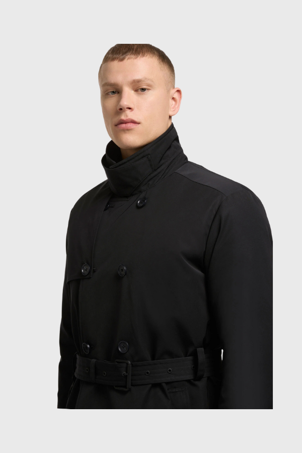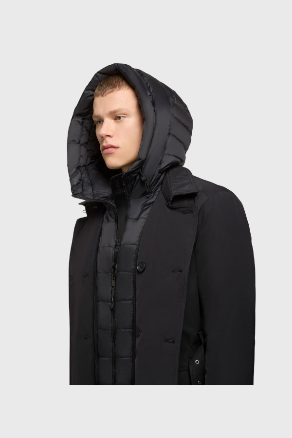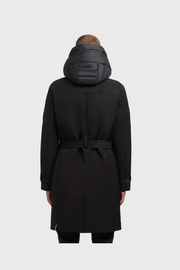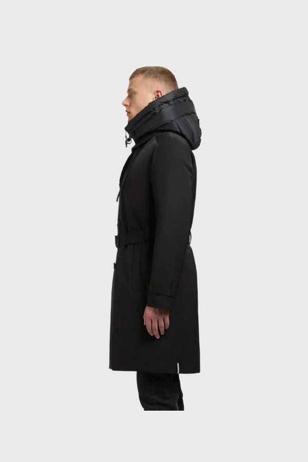 Μια αφαιρούμενη καπιτονέ επένδυση με κουκούλα δίνει στο παλτό Tarm μια ξεχωριστή εμφάνιση που σίγουρα θα τραβήξει τα βλέμματα. Ο κλασικός γιακάς με πέτο, η σχισμή για το περπάτημα με μαγνητικό κουμπί, οι τιράντες στους ώμους και η αφαιρούμενη υφασμάτινη ζώνη με μεταλλική αγκράφα προσθέτουν μοντέρνες πινελιές σε αυτό το παλτό.