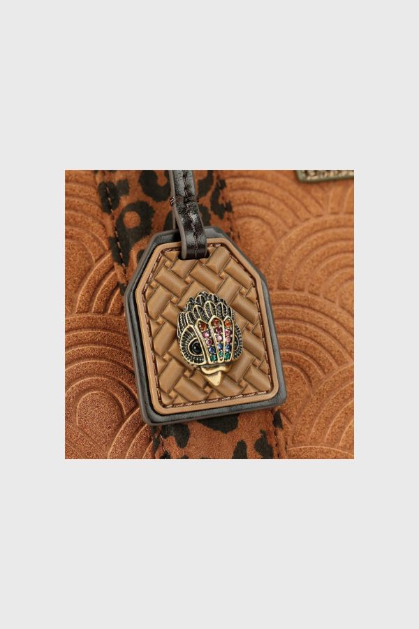 Η τσάντα Southbank Tote είναι κατασκευασμένη από καφέ σουέτ δέρμα με μοτίβο ουράνιου τόξου και διακοσμητικά στοιχεία Borg.