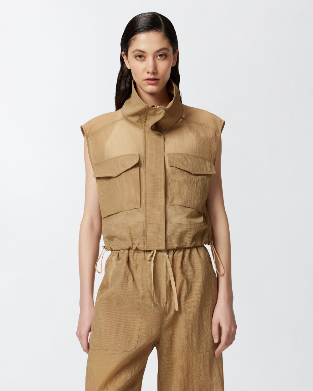 - Αμάνικο μπουφάν σε κοντή γραμμή από ύφασμα ripstop