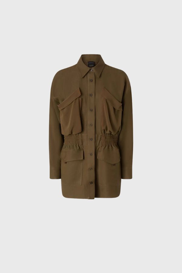 - Ελαφρύ overshirt με ελαφριά, ημι-διαφανή τζορζέτα στην πλάτη