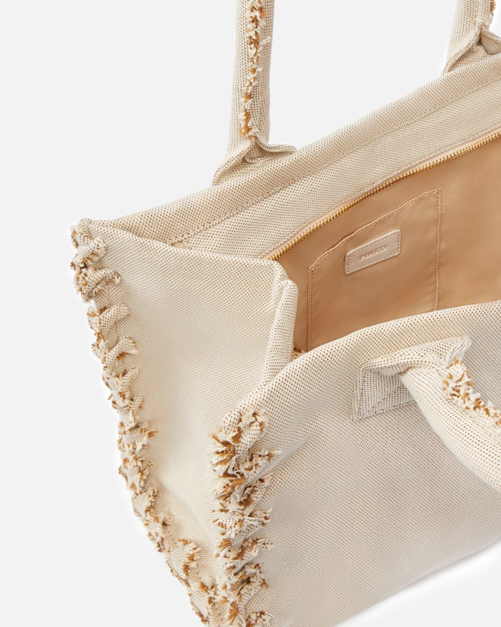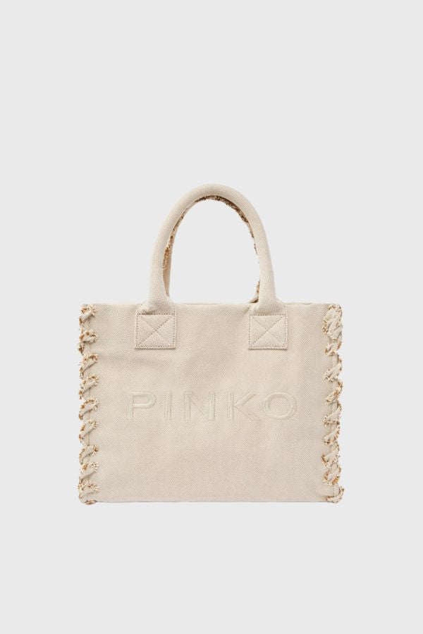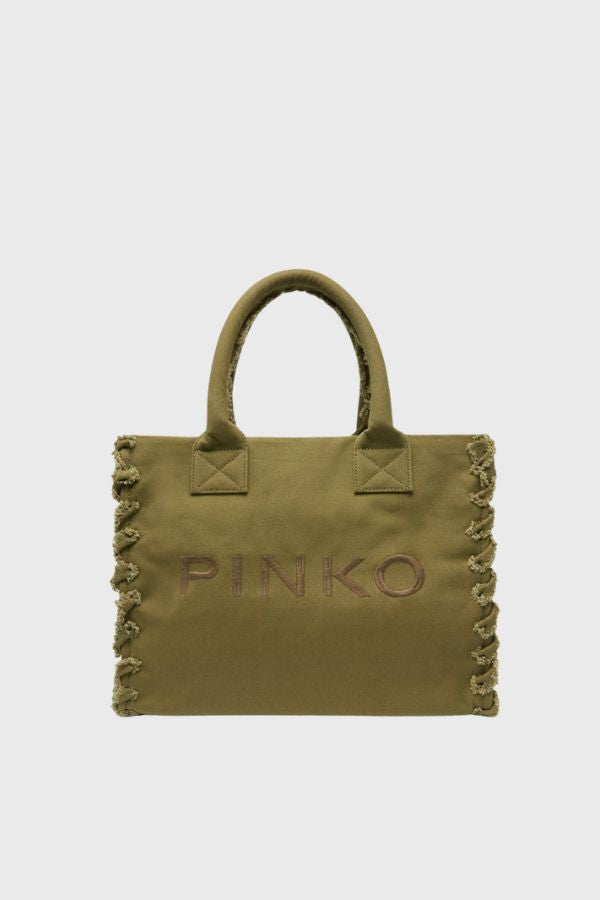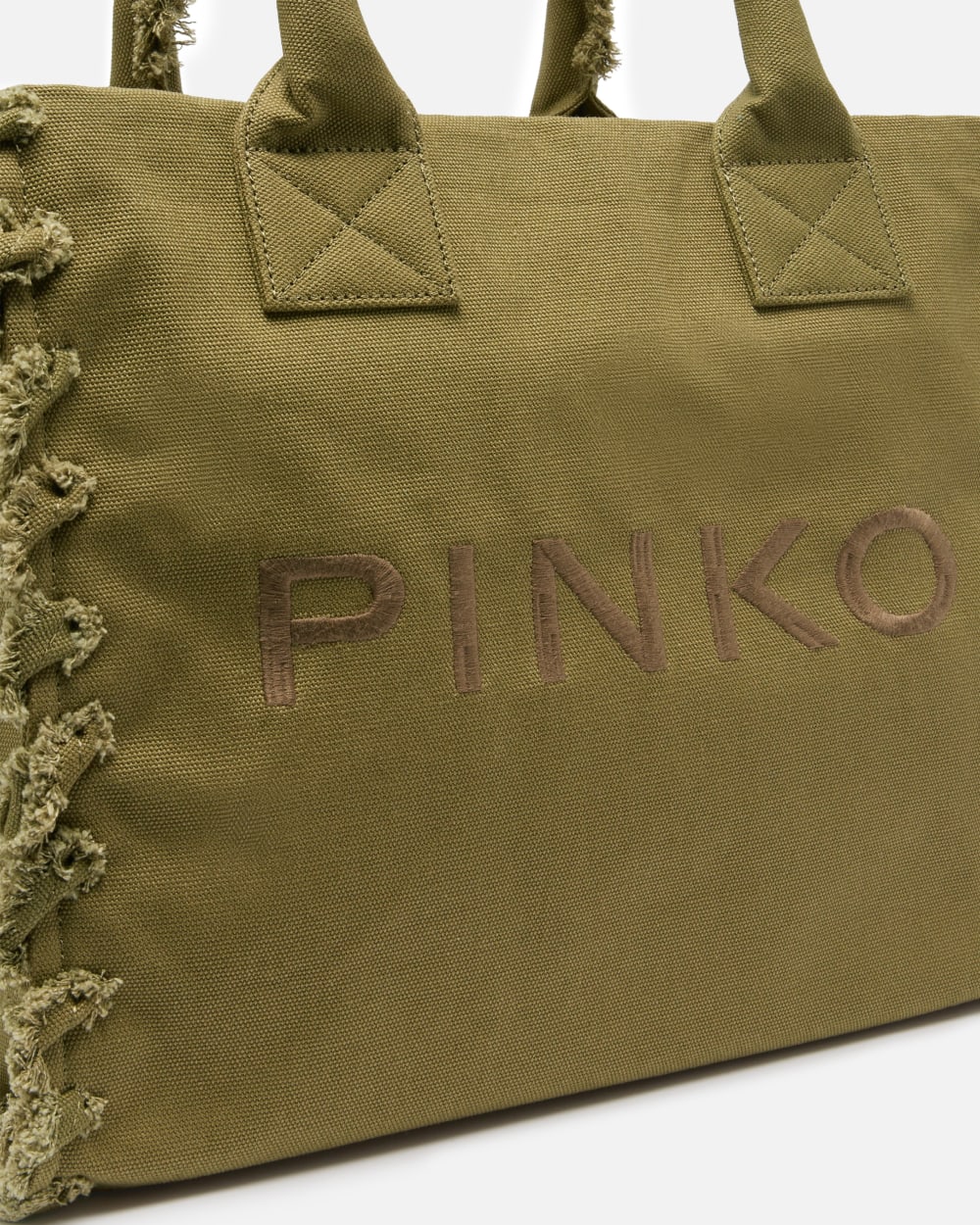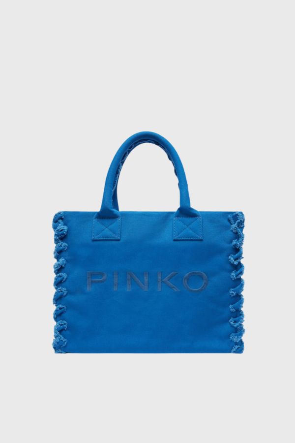 - Με πλαϊνή κλωστή, κρόσσια στις άκρες και κεντημένο λογότυπο PINKO στο μπροστινό μέρος