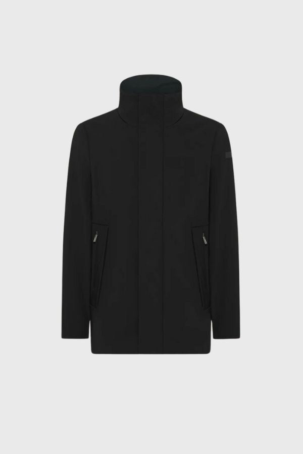 Το μαύρο λογότυπο με μικρο-εγχάραξη στο αριστερό μανίκι σηματοδοτεί ένα ευέλικτο πανωφόρι για όλες τις περιστάσεις. Το αδιάβροχο και διαπνέον ύφασμα με μεμβράνη Stratofabric#3 διακρίνεται από την εξαιρετικά ματ εμφάνιση του αποκλειστικού SURFLEX® και την λεπτή βελούδινη επένδυση. Το μπουφάν διαθέτει πλαϊνές τσέπες σε κάθε πλευρά, τόσο πρακτικές όσο και διακριτικές: δύο επικαλυπτόμενες τσέπες με συρόμενο φερμουάρ. Η ψηλή, προστατευτική κουκούλα με γιακά κρύβεται με αόρατο φερμουάρ.